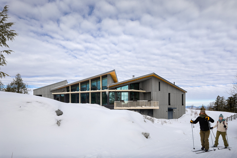A protected south-facing porch, a warming hearth, and a breeze-filled exhibition space support gathering and contemplation, while celebrating seasonal and daily change.